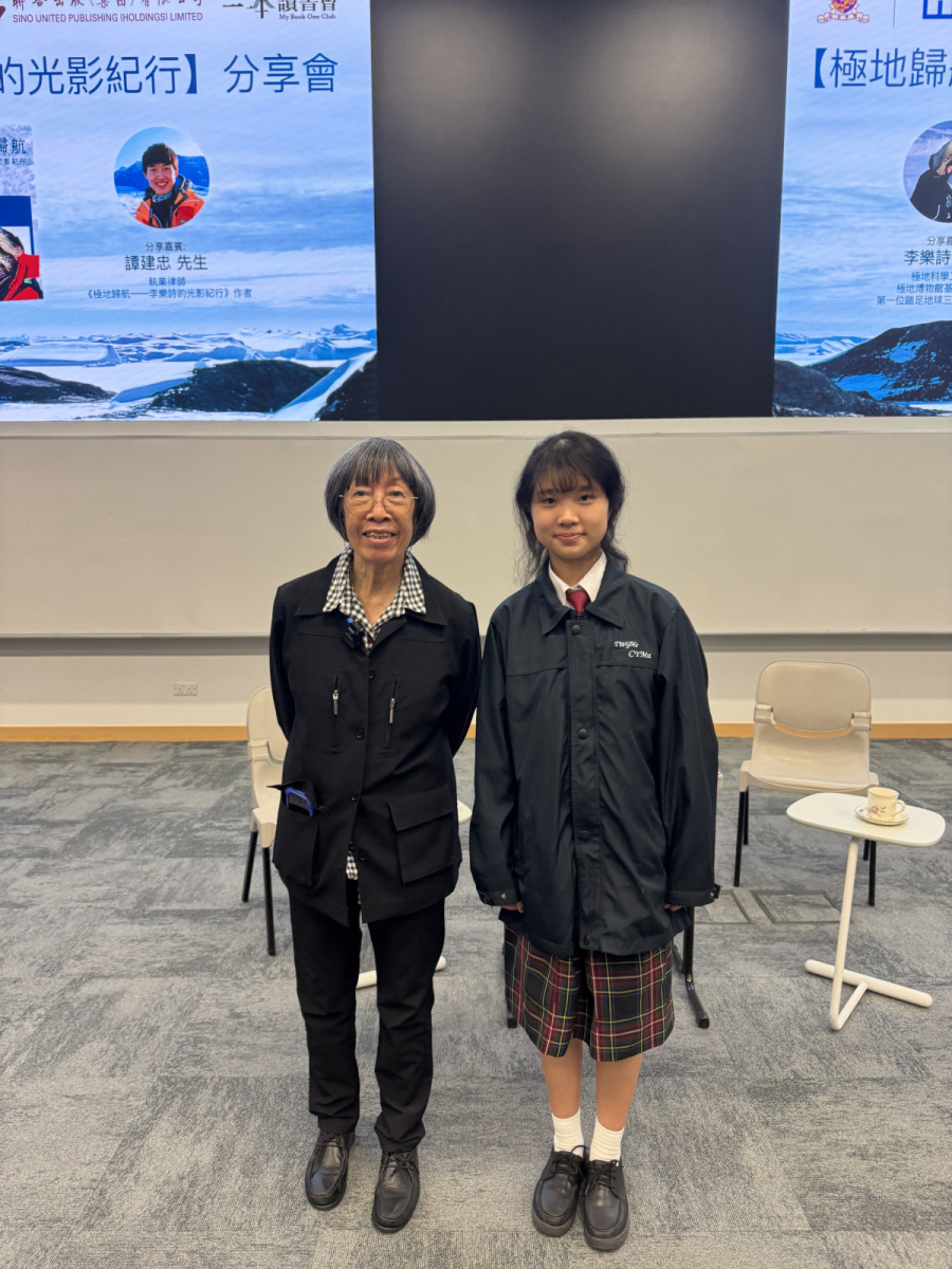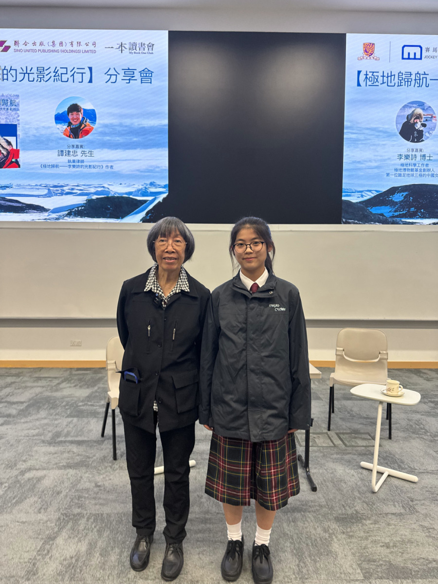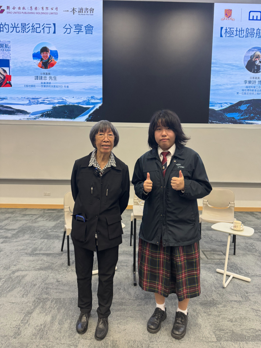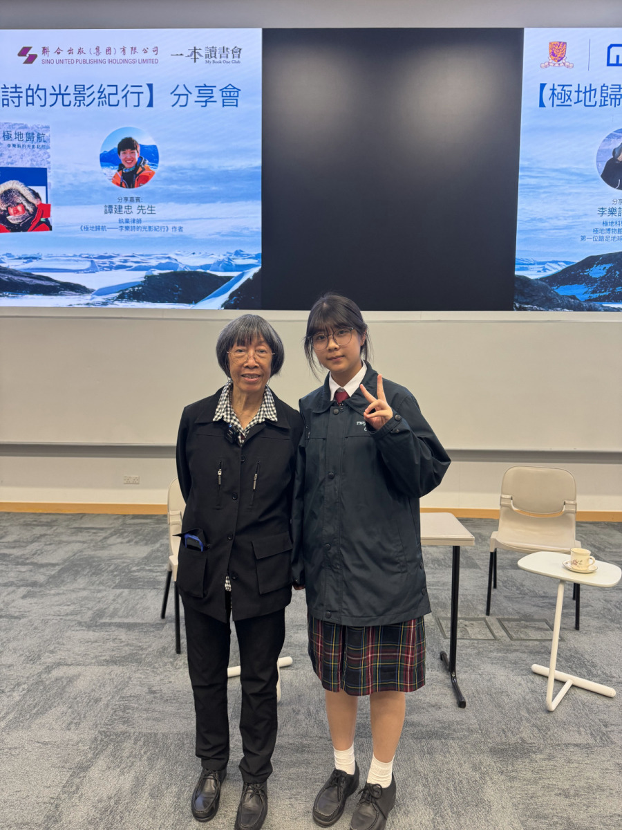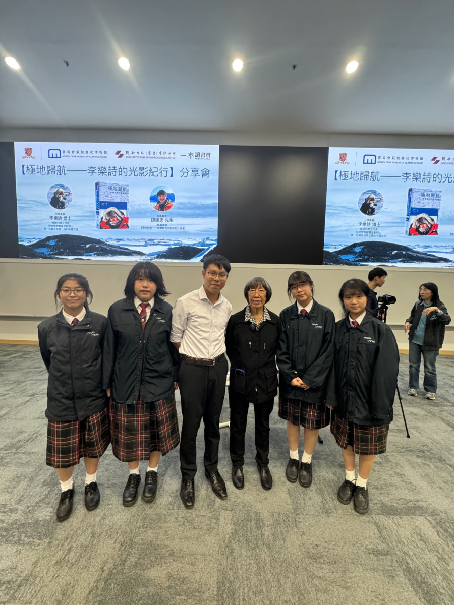 四位中三級同學及地理科蔡老師於2025年11月30日出席【極地歸航——李樂詩的光影紀行】分享會。本次活動由中國第一位登上三極(南極、北極、珠穆朗瑪峰)的女性——極地探險家李樂詩博士作分享,同學於過程裏面學到有關三極融冰狀況、了解到全球氣候變化對於極地的影響,同時了解到如何可以成為極地科學探險家。