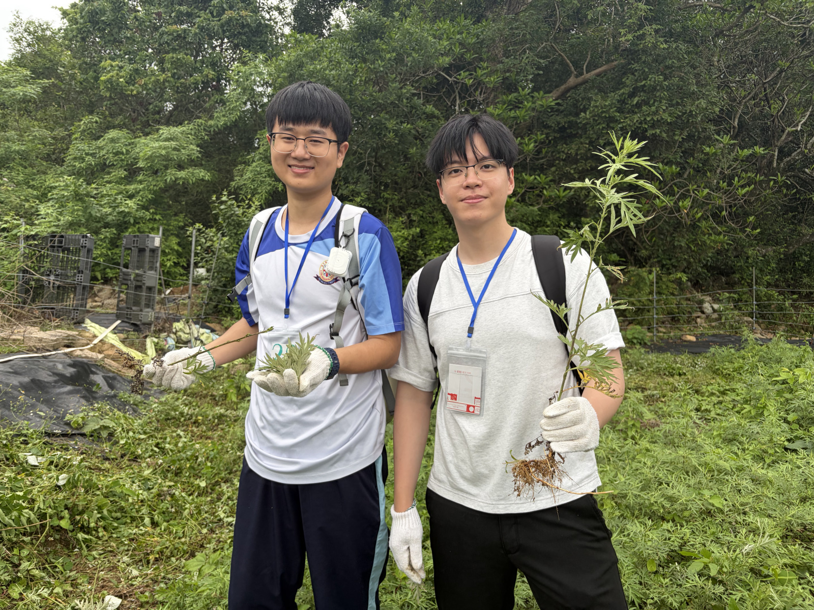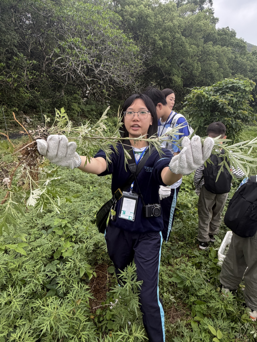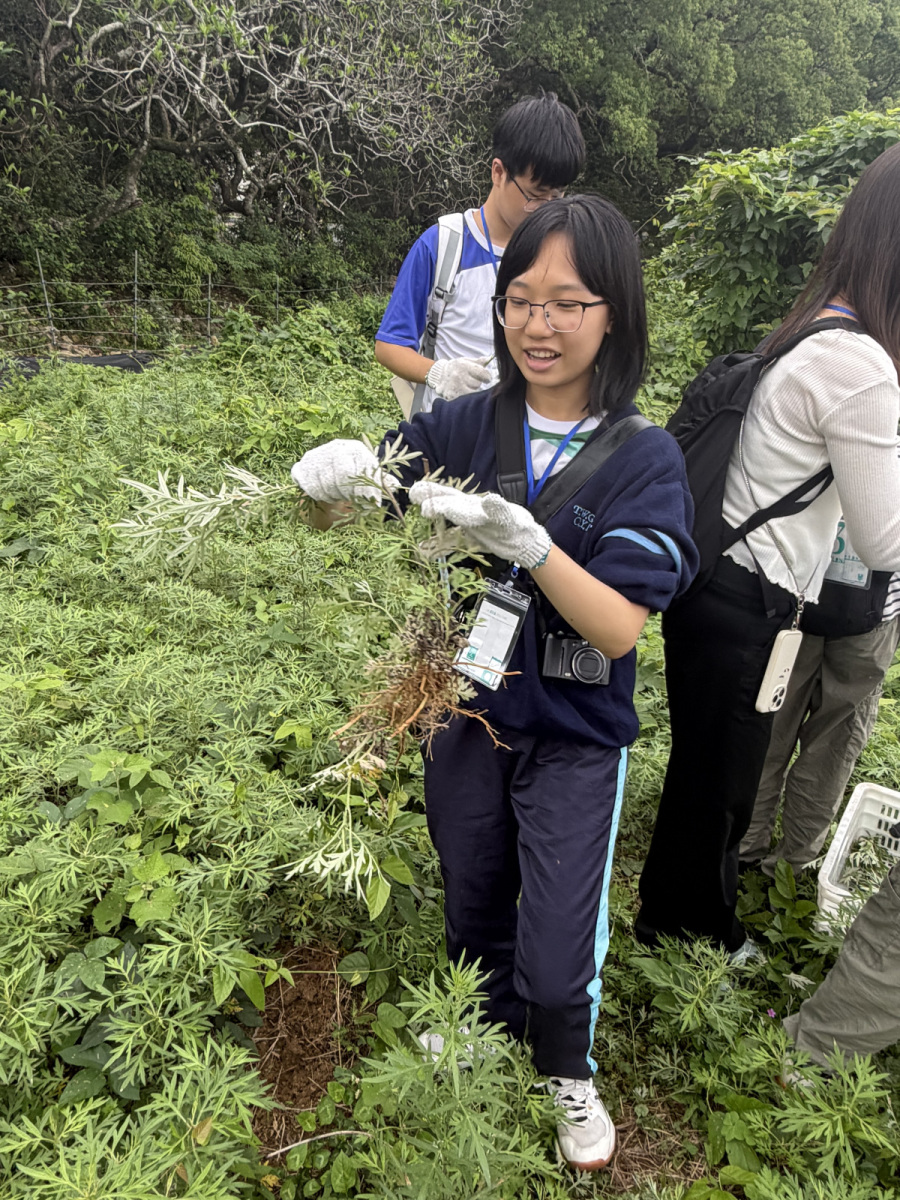 生物科同學前往荔枝窩展開生態與文化探索之旅。在當地農夫指導下,同學親自動手清理外來植物薇甘菊,實踐生態保育;同時體驗採收艾草,並聞嚐檸檬葉、薄荷與香茅等香草,感受自然氣息。活動亦帶領同學深入認識荔枝窩客家村的歷史文化,並探索村旁風水林的植物分佈與生態軌跡,是一次結合學科知識與在地文化的體驗。