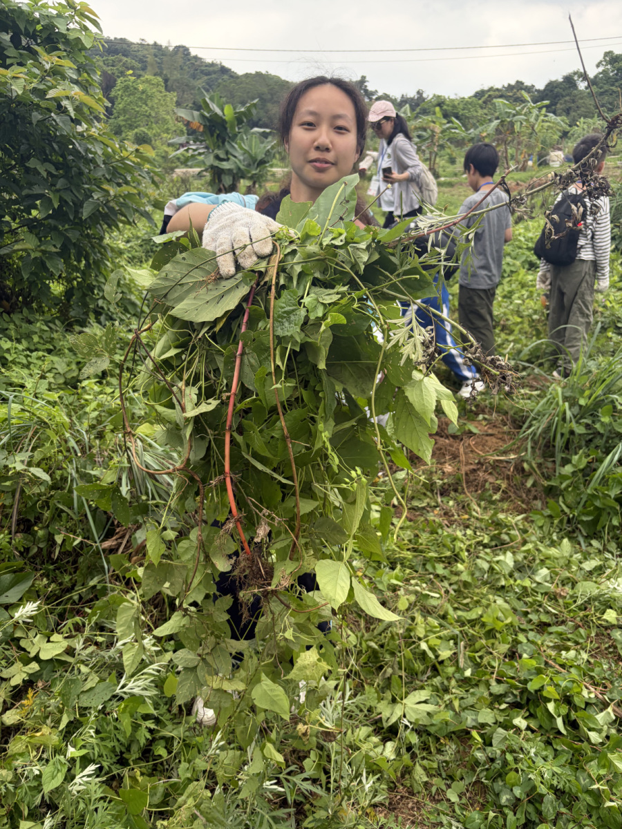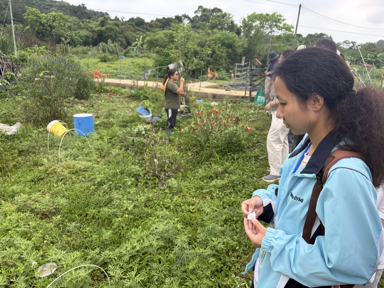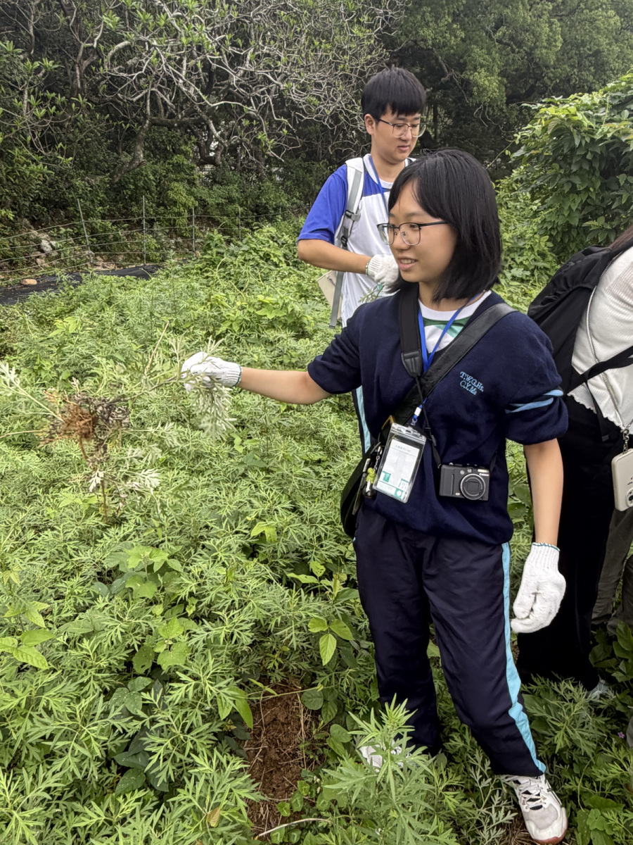 生物科同學前往荔枝窩展開生態與文化探索之旅。在當地農夫指導下,同學親自動手清理外來植物薇甘菊,實踐生態保育;同時體驗採收艾草,並聞嚐檸檬葉、薄荷與香茅等香草,感受自然氣息。活動亦帶領同學深入認識荔枝窩客家村的歷史文化,並探索村旁風水林的植物分佈與生態軌跡,是一次結合學科知識與在地文化的體驗。